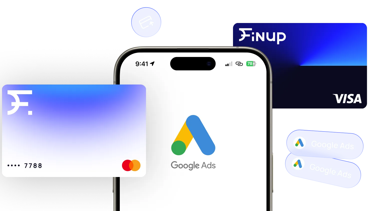 Choose your virtual credit or debit card for Google Advertising and enjoy all the perks of online payment methods. Pick one from Finup’s flexible solutions for any scale and type of project.